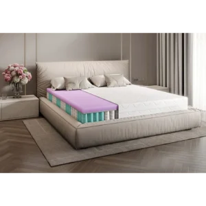 Materac kieszeniowy z pianką termoelastyczną TIMO to dwustronny materac, który zapewnia maksymalny komfort i wsparcie dzięki połączeniu sprężyn kieszeniowych i dwóch rodzajów pianek. Idealny dla par, osób z problemami kręgosłupa, seniorów oraz alergików, oferuje twardość dostosowaną do indywidualnych potrzeb, gwarantując zdrowy i regenerujący sen przez wiele lat.