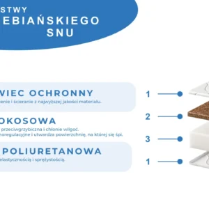 - Kokos: naturalnie utwardza, wspiera wentylację i ogranicza wilgoć, bakterie oraz roztocza.
